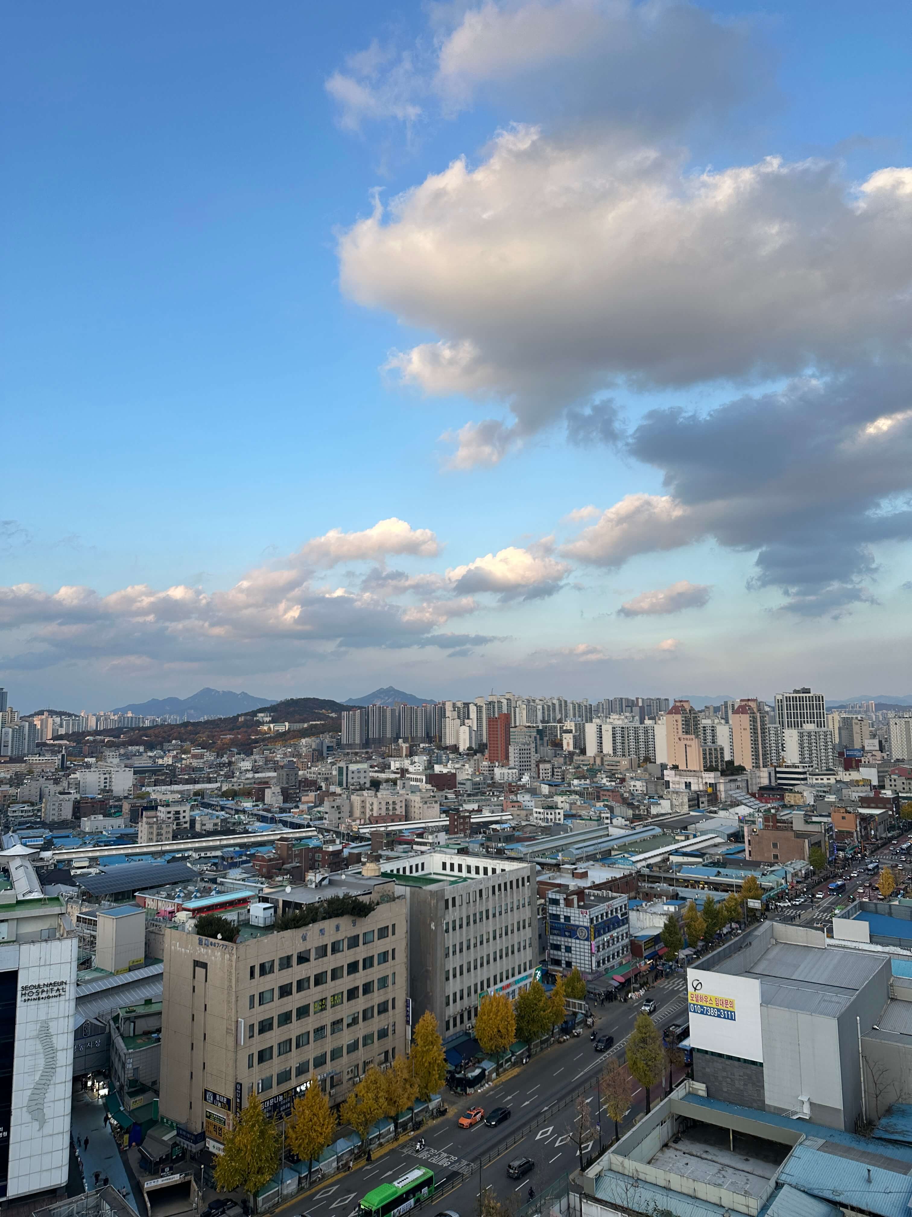시내 뻥뷰, 야경, 저 멀리 북한산도 보임