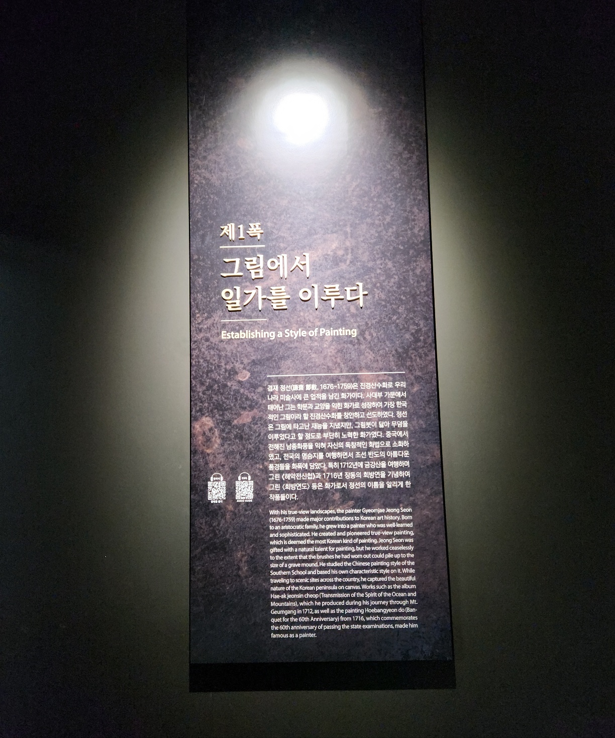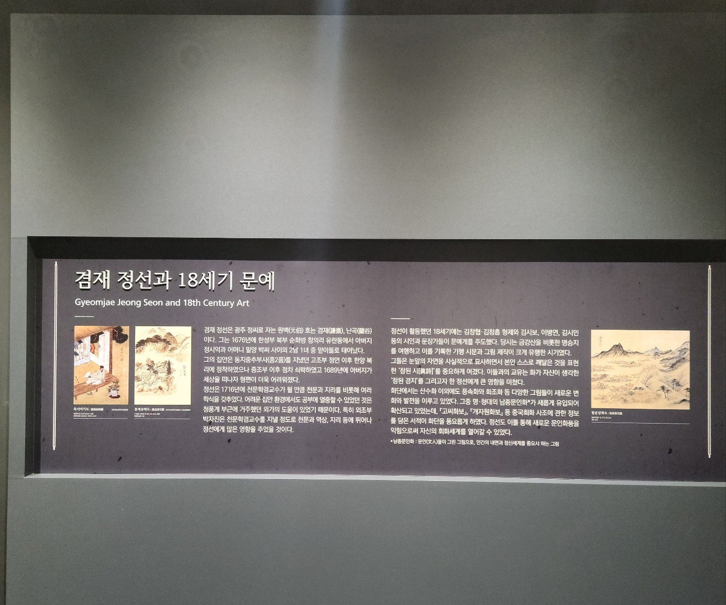 전시실에는 정선의 대표적인 그림들이 복원, 재현된 형태로 전시되어 있습니다.